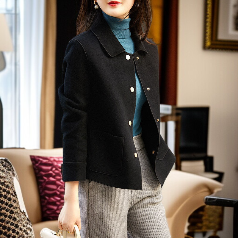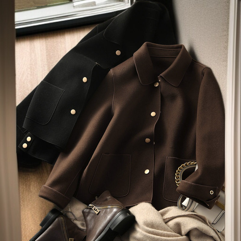 ルーズな両面ツイードショートジャケット 軽くて高級な気質のファッションラペルショートジャケット ファッション両面ツイードショートジャケット