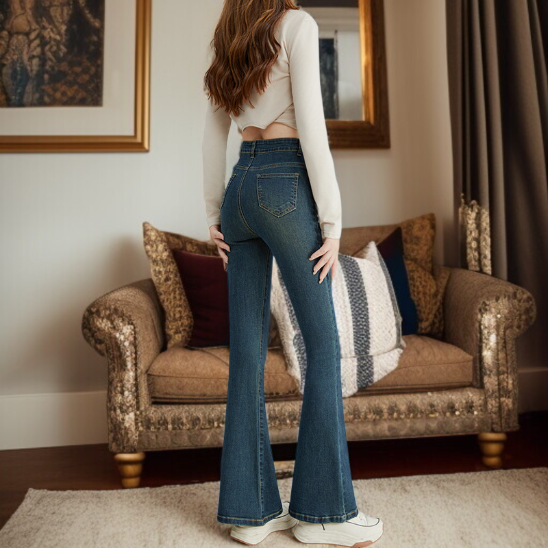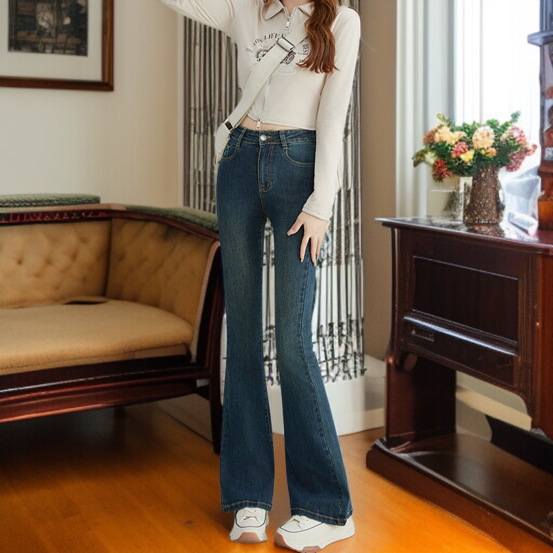 小さめハイウエストワイドジーンズ女性春春スリム細めマイクロフレアワイドパンツ